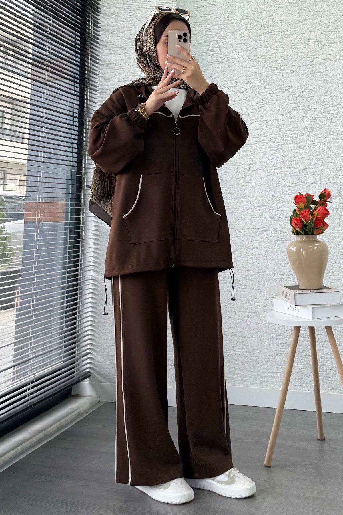 Cepli tasarım • Detaylar: Fermuarlı, kapüşonlu üst – biye detaylı kesim – cepli üst ve alt • Manken: 165 cm / 52 kg (S beden çekim)