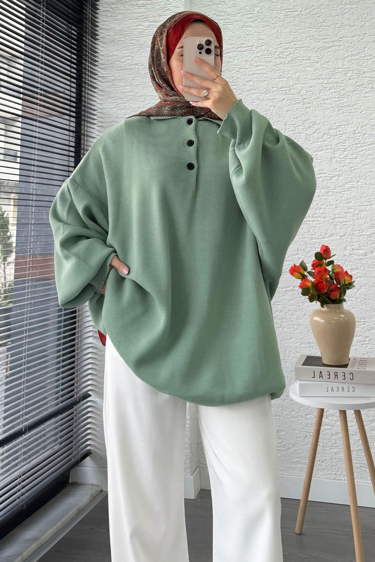Gömlek yaka düğmeli oversize triko kazak, minimal tasarımı ve rahat kalıbıyla sezonun en iddialı parçaları arasında. 80 cm uzunluğu ve 150 cm göğüs genişliğiyle geniş bir beden aralığına (36-46) uyum sağlayan bu model, yumuşak triko dokusu sayesinde gün boyu konfor sunar. Salaş kesimi ile oversize tarzı seven kadınların vazgeçilmezi olurken, gömlek yaka ve düğme detayıyla klasik şıklığı modern dokunuşlarla buluşturur.
