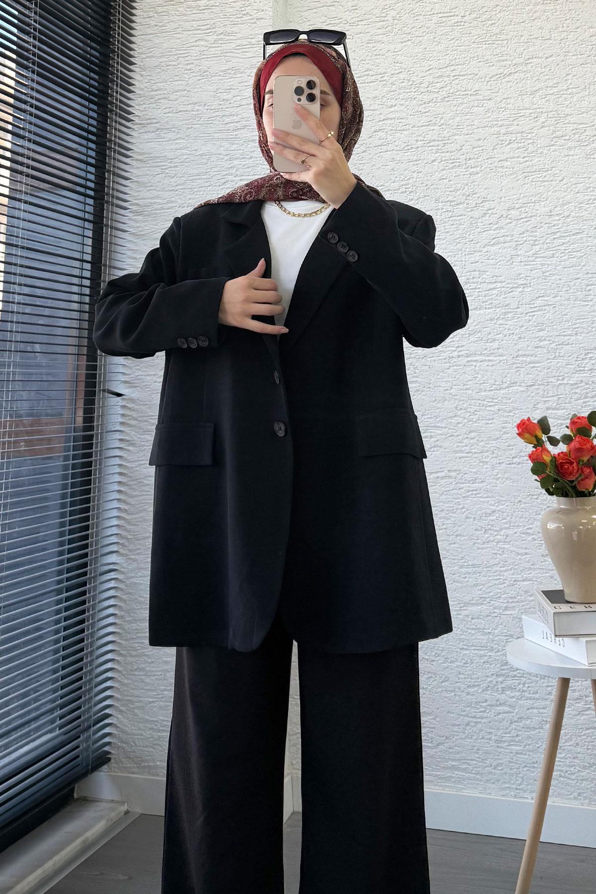 Haki keten blazer kadın ceket, oversize kalıbı, astarlı yapısı ve nefes alabilen keten kumaşı ile gün boyu rahatlık sunarken modern bir görünüm kazandırır. İki düğmeli tasarımı ve cep görünümlü detayı ile hem ofis kombinlerinde hem günlük kullanımlarda şık bir tamamlayıcıdır.