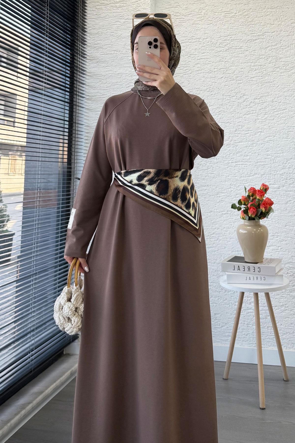 İki İplik Sweat Elbise - Kahverengi (mlk15427)