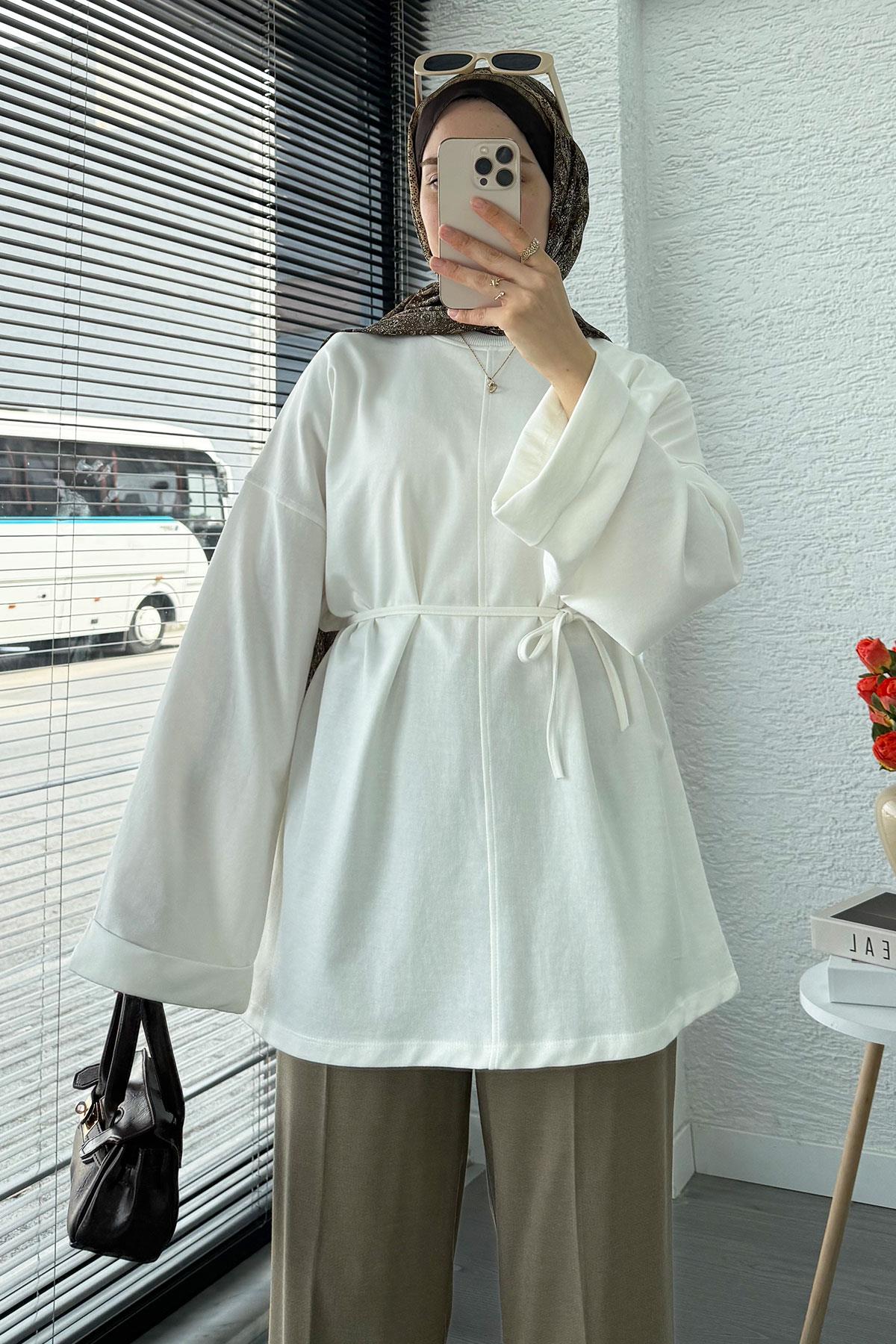 Kolu Katlı Basic Yazlık Tunik – Ekru