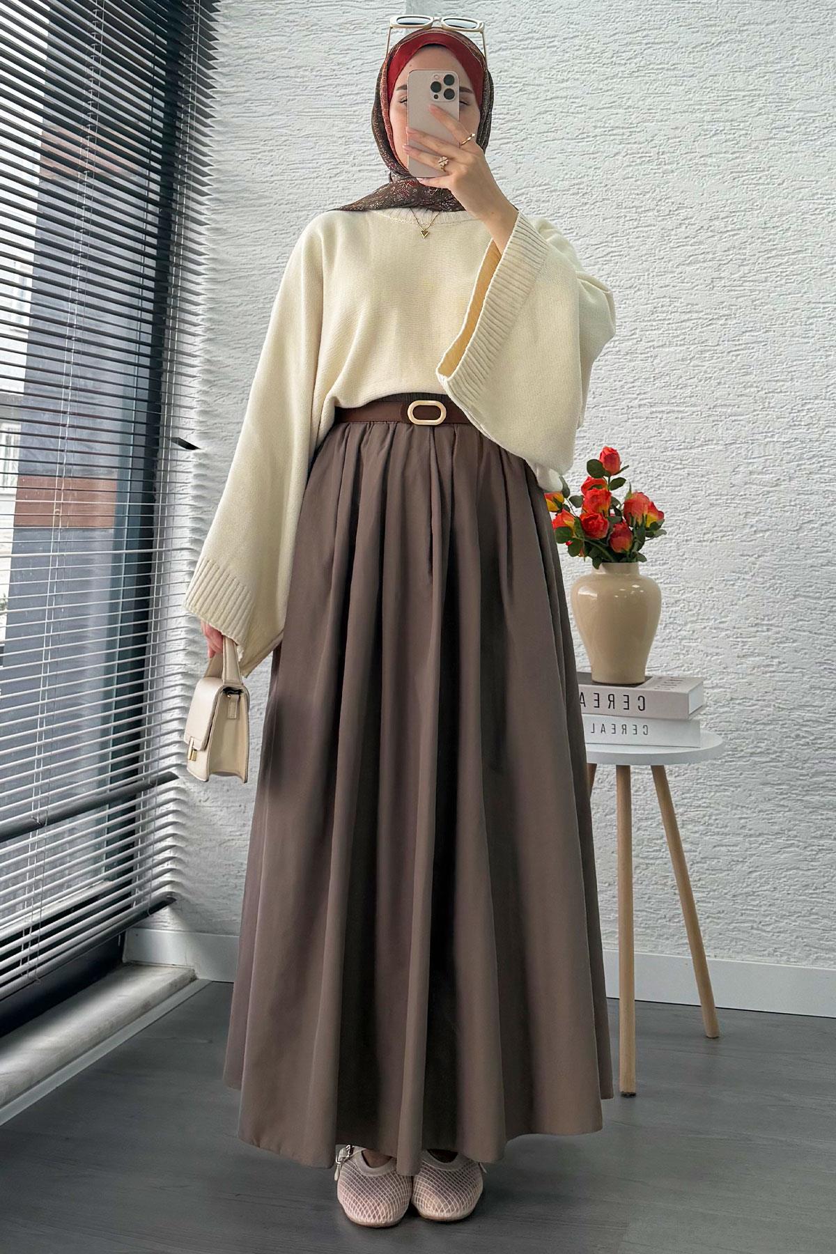 Nervür Detaylı Cepli Poplin Etek – Cappicino (mlk15502)
