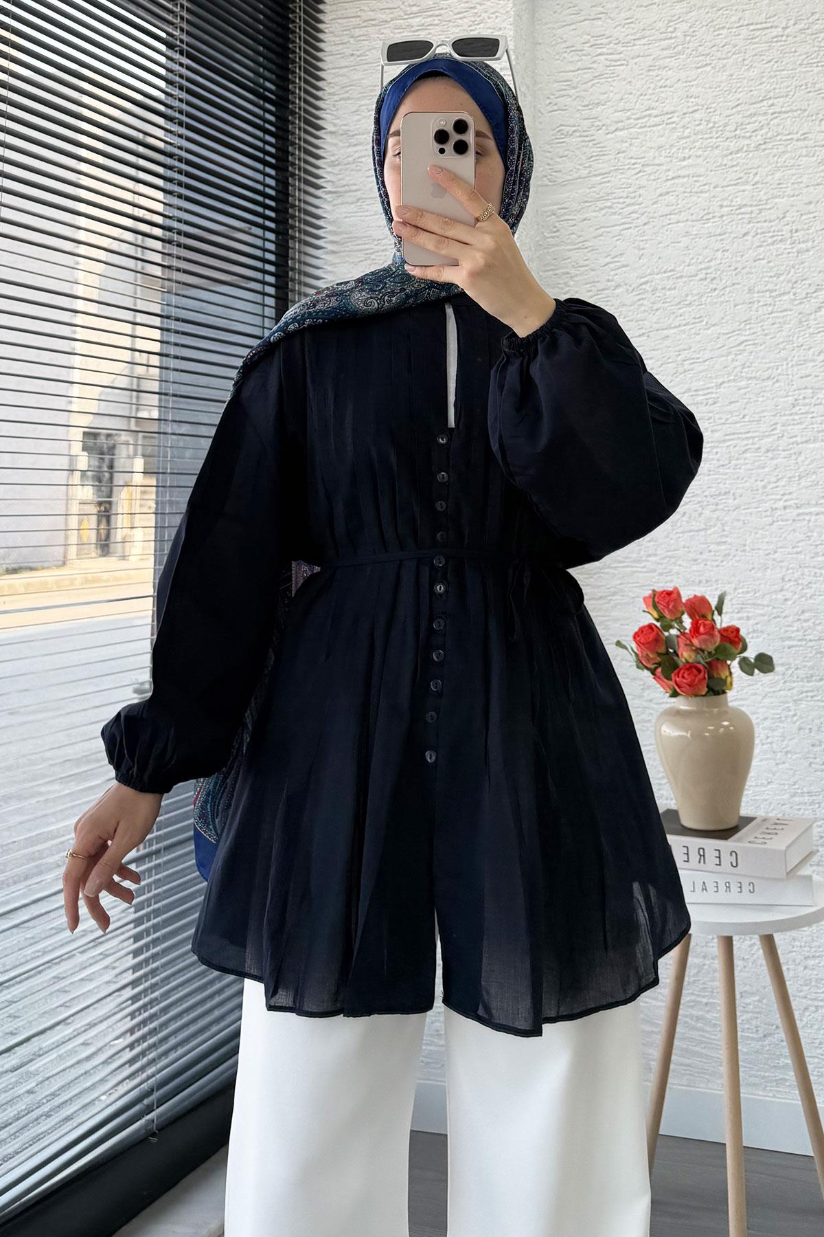 Nervür Detaylı Vual Tunik -Lacivert (mlk15392)