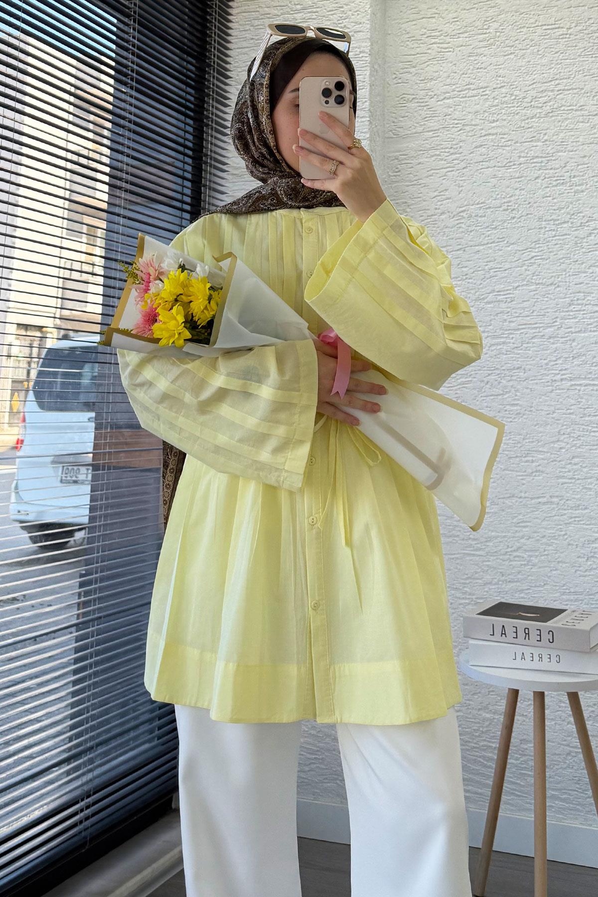 Yaz sezonunun kurtarıcı parçası olan nervürlü geniş kollu vual tunik, zarif görünümü ve fonksiyonel detaylarıyla şıklık arayan kadınların favorisi oluyor.
