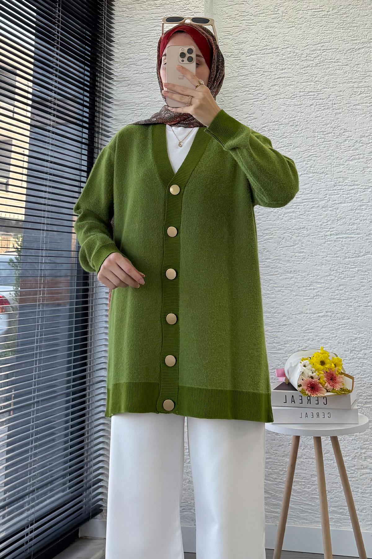 Önden Düğmeli Yumoş Kadın Hırka – Yeşil