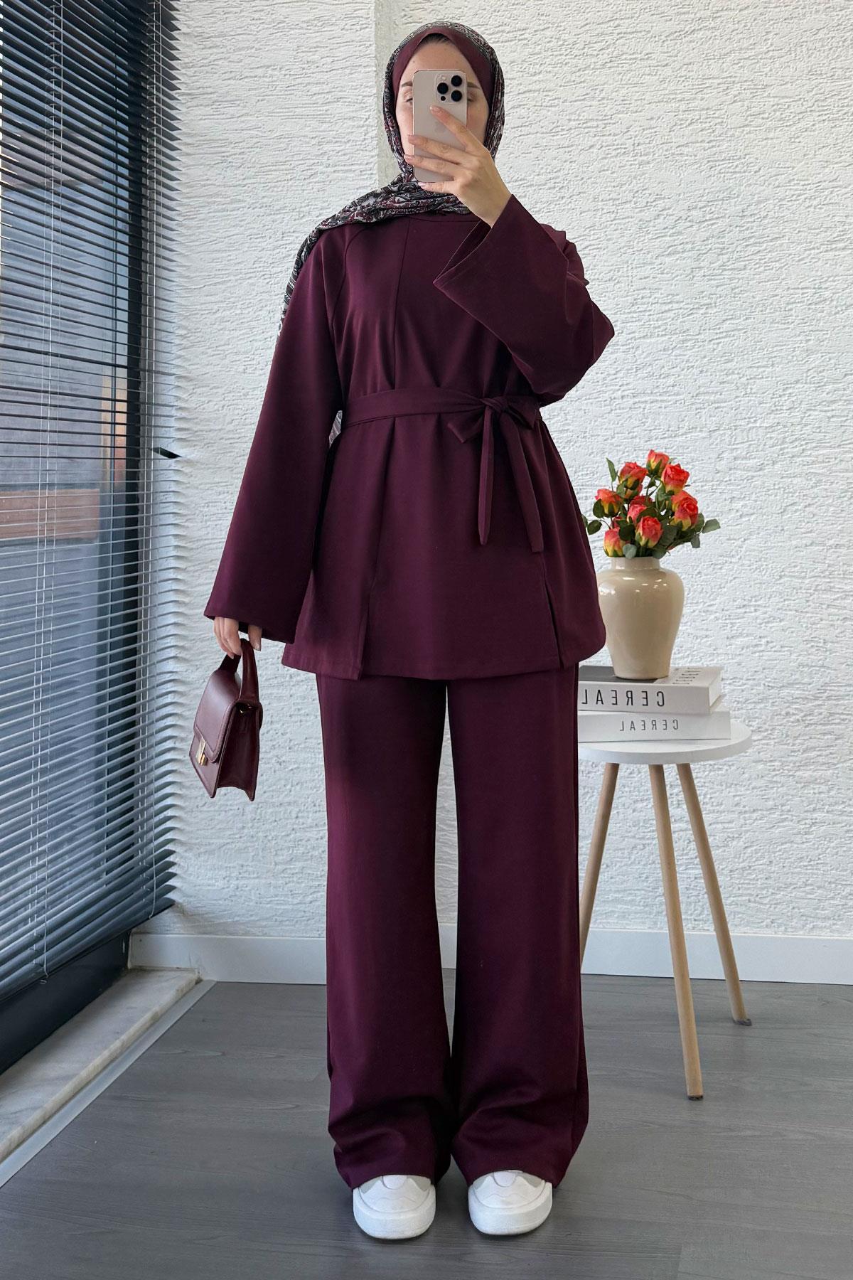 Önden Yırtmaç Detaylı İkili Takım - Mürdüm (mlk15412)