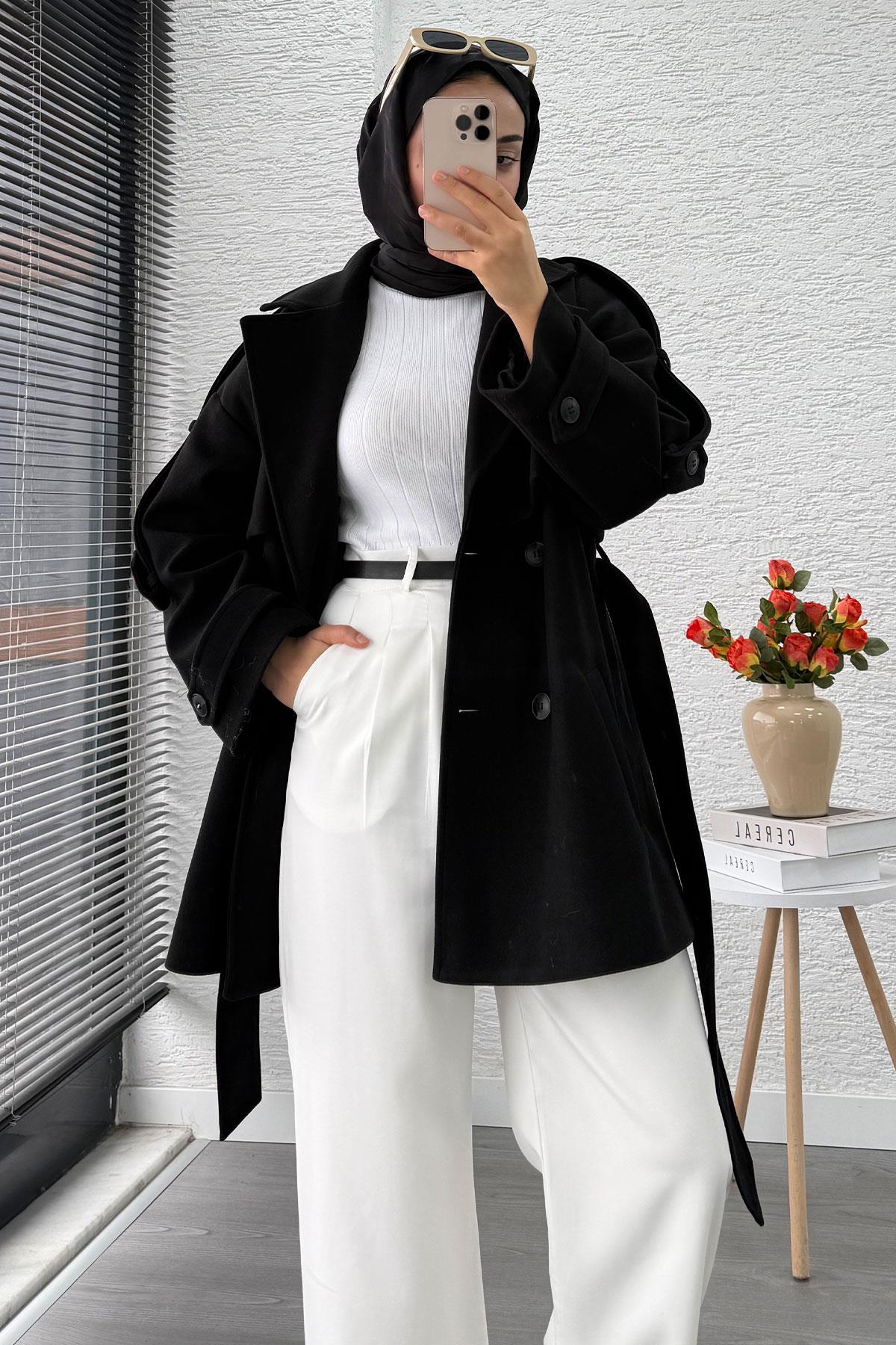 Premium Dört Düğmeli Kısa Kaşe Kaban – Siyah (mlk15533)