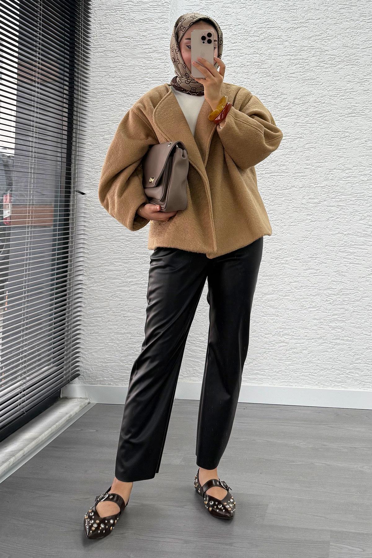 Premium Havuç Kesim Deri Pantolon, sezonun en iddialı parçalarından biri olarak gardırobuna sofistike bir dokunuş katıyor. Yüksek bel lastikli formu, gün boyu konfor sağlarken; cepli tasarımı ve kaliteli deri dokusu ile hem şık hem işlevsel bir kullanım sunuyor.